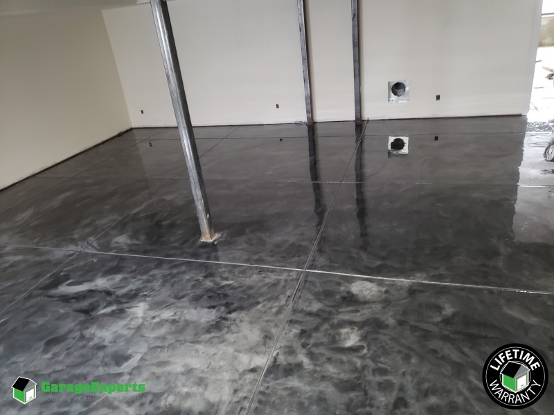 for "Epoxy Garage Floor Metallic In Ontario : Pauls Garage - Metallic Epoxy Floor - Stamped Slate"